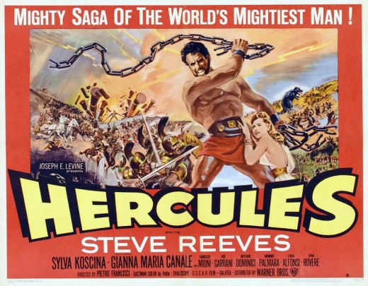 El ciclo inició con el héroe por antonomasia de aquellos tiempos: Hércules (Pietro Francisci, 1958), protagonizada por el célebre fisiculturista Steve Reeves, lo cual es un indicio del tipo de cine que pretendía ser este, que privilegiaba la musculatura y buen porte sobre el talento actoral (cosa que no pasaba con los villanos). Luego de una segunda entrega tras el enorme éxito de esta película, se vino una avalancha de películas péplum entre las que había de todo, desde algunas súper producciones y cintas de calidad, hasta innumerables cintas de consumo cargadas de acción, algo de erotismo, desidia por la exactitud histórica y disparates o excesos que rayaban con el kitsch. Esta etapa del cine italiano vio su fin con el advenimiento del spagetti western que, guardadas las diferencias temáticas, espaciales y temporales, en términos de producción e industria fue un ciclo muy similar.