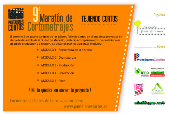 La maratón recibirá cortometrajes de ficción hasta el 30 de julio en dos categorías: Cortometraje Nacional y Nuevos Creadores de Antioquia (Para primera obra de directores del departamento).