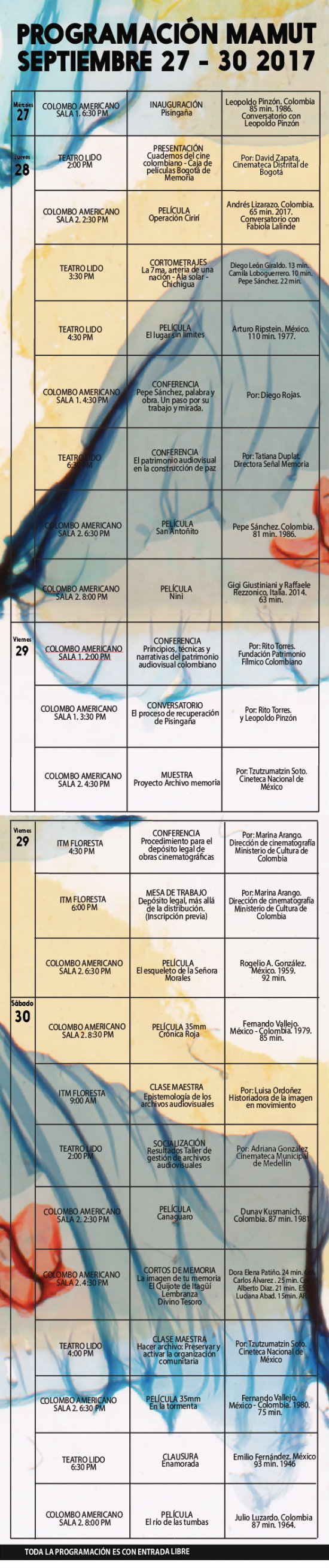 Septiembre es el mes del patrimonio y el escenario para MAMUT, un festival de cine temático, que se realizará entre el 27 y 30 de este mes en Medellín, y que aborda la memoria y los archivos desde la mirada audiovisual. El festival se plantea como un punto de encuentro y debate sobre el uso y la preservación de las imágenes y del cine. En una era en la que la información es efímera, el festival le apuesta a los archivos, generando reflexiones en torno a las humanidades digitales al servicio de la memoria audiovisual.