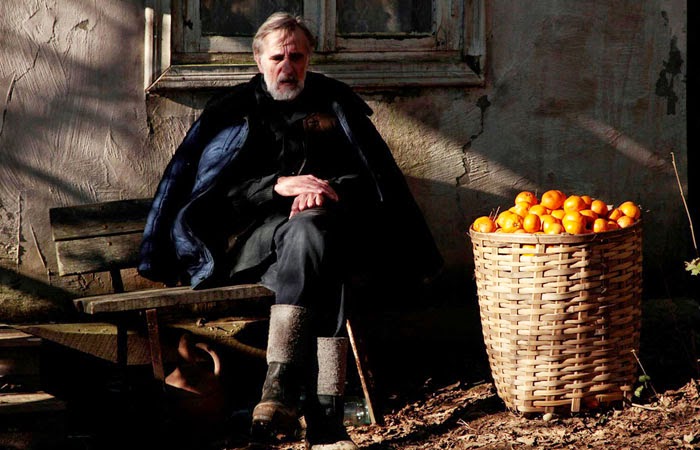 La cosecha de mandarinas que el viejo y su amigo quieren recoger es la forma en que la historia da cuenta de una cotidianidad perdida y de ese bucólico paraíso que la guerra les arrebató. Por alguna razón que la película no explica (y que tiene que ver con una singular conexión cultural entre estonios y georgianos a pesar de no compartir fronteras), un pueblo de estonios termina en medio de aquella guerra y, aunque muchos se van, otros pretenden continuar con su vida, tomando el té y recogiendo mandarinas.