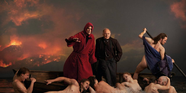 El segundo componente en cambio, es complejo, intelectualizado, cargado de información y un complemento que de alguna forma le da sentido a ese otro relato mórbido y un poco elemental. Se trata de la conversación entre Jack y Verge, mientras este conduce a aquél hacia el infierno, en una directa alusión a Dante y Virgilio en La divina comedia. Un diálogo que hila los cinco truculentos episodios y los comenta, no tanto a la manera de un coro griego, sino más bien como si fuera la disertación filosófica de una competencia de argumentación, la cual, además, está profusamente ilustrada con diapositivas. Aquí lo cinematográfico, valga decirlo, pasa un poco agachado debajo de todo ese texto y esa retahíla de imágenes fijas de irregular calidad.
