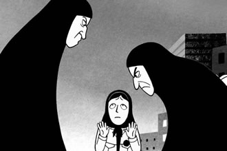 Pero al chasquear los dedos y despertar de la hipnosis formalista, de la muy personal y atractiva propuesta gráfica, sólo es posible ver una historia esquemática en su argumento y en su tratamiento narrativo. Tal vez este esquematismo haya sido heredado de la novela gráfica que le dio origen, donde sí puede ser justificable por la falta de movimiento y banda sonora propios del cómic, pero en la película es una carencia más que evidente. La autora de la novela gráfica es Marjane Satrapi, quien hace en ella historia autobiográfica y, por la fidelidad de la película, aparece como codirectora de la cinta.