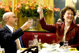 A mediados del siglo XX en París y a principios del XXI en Queens, Julia Child y Julie Powell, respectivamente, se imponen a sí mismas un reto muy parecido, dominar el arte de cocinar, cada una a su manera y a partir de ciertas condiciones. Pero lo que verdaderamente las une es lo que este reto significó para sus vidas, pues afrontarlo y superarlo las hizo mejores personas. O al menos así lo quiere proponer este filme de Nora Ephron, una guionista y directora que ha tenido buena mano para contar historias emotivas y cándidas (en el buen sentido de la palabra), como Sintonía de amor o Michael.