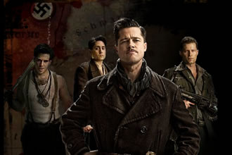 Lo primero que hay siempre que tener en cuenta para ver ésta y casi todas las cintas de QT es que el referente del que parte para crear sus universos, historias y personajes no es la realidad sino el cine (y a veces la televisión), con toda su iconografía, historia y mitología. Los homenajes y variaciones al cine de explotación de los setenta son sus preferidos: las artes marciales en el díptico de Kill Bill, blackxplotation en Jackie Brown o películas de autos, carreras y choques en Death proof. Con su nuevo filme hace referencia al cine de explotación de guerra, tipo Los doce del patíbulo (Aldrich, 67), o incluso al llamado macaroni combat, que es la versión italiana de este cine, así como el espaguetiwestern lo fuera a las películas del oeste.